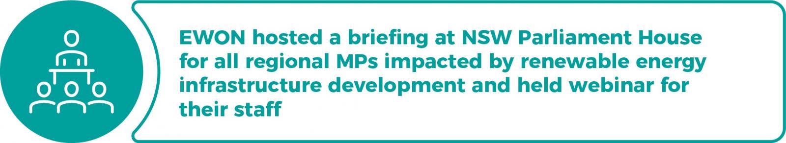 In our role we can’t stop or delay transmission or renewable energy projects, but we can provide independent advice and assistance. When we can’t help, our ‘no wrong door’ approach means we connect people with the organisation that can.