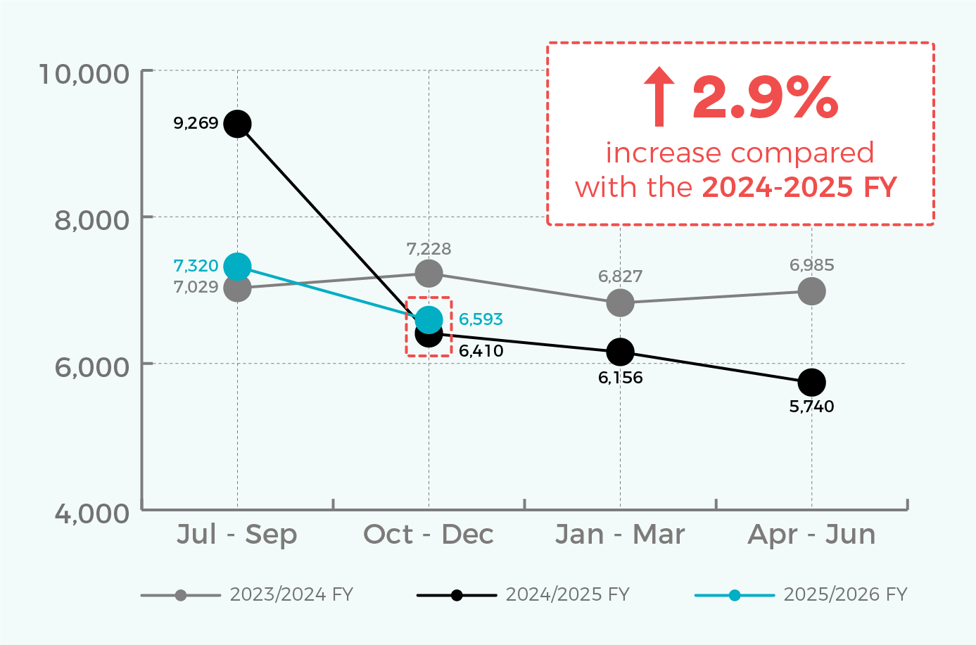 Complaint numbers for the October to December 2025 quarter dropped by 9.9%, which is the usual pattern after a peak in the July to September 2025 quarter (which includes winter bills). Complaint numbers this quarter were very similar to the same time last year, only 2.9% higher than the October to December 2024 quarter. If past trends continue, they will plateau our trend downwards for the next two quarters. However, many factors have the potential to impact complaint trends over the coming months, such as the accelerated smart meter rollout.